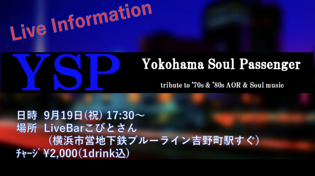 よく考えるとYSPだけ夏っぽくないですが、いつもの感じで、70-80年代洋楽AORやブラックミュージックのカバーをお届けします。